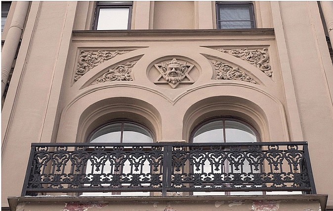 Современное фото. Балконы остались, а чугунные крылечки под ними уже снесли.
