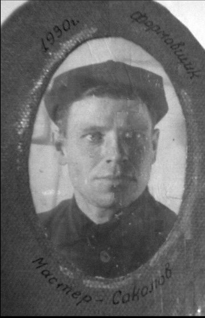 Соколов Александр Васильевич, год рождения 1902 года, член ВКП(б) с 1932 года, сын крестьянина-середняка Калининской области, до мая 1927 г. жил в хозяйстве отца и работал на разных сезонных и временных работах. С мая 1927 года по май 1930 года милиционер речной милиции в гор. Ленинграде и с 1930 г. по настоящее время работает на заводе «Электроаппарат». До 1933 г. работал рабочим-формовщиком литейного цеха, затем был выдвинут в ОТК и работал приемщиком до 1934 года и уже с 1934 года по июнь 1937 г. работал там же контрольным мастером.