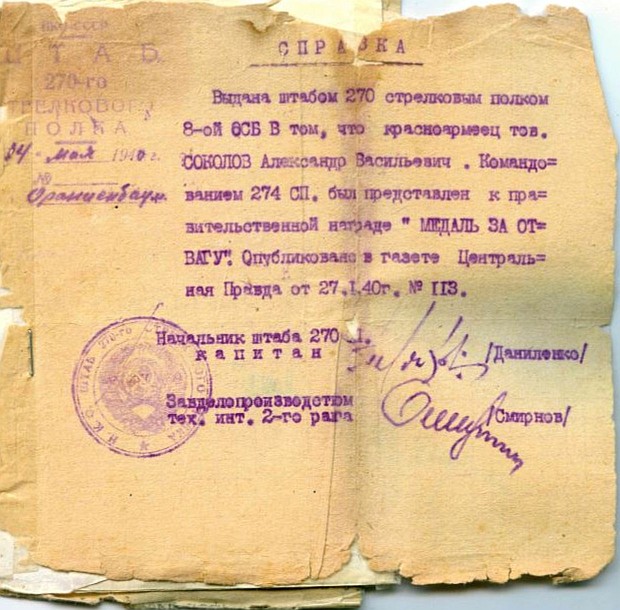 Вот и наша семья 80 лет не могла найти никаких подробностей о последних днях жизни моего деда Александра Васильевича Соколова, награжденного в январе 1940 г. медалью "За отвагу" и погибшего в феврале этого же года на Финской войне.